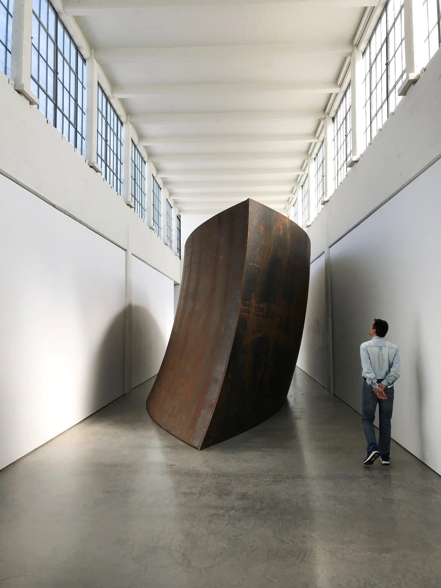 The organization and rhythm of the spaces generates a more exciting experience. Unknowingly, you turn the corner into a large hall of Heizer’s weathering steel holes or enter a smaller space with Richard Serra’s massive steel sculptures that feel as if they are taking over the room.