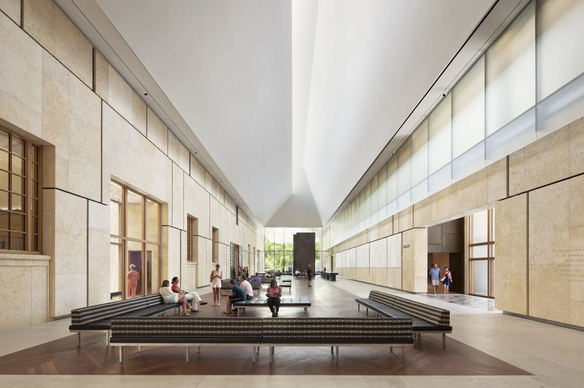 The Barnes Foundation was designed by Tod Williams Billie Tsien Architects (TWBTA). The building’s exterior is lined with fossilized Israeli Limestone. This specific limestone was chosen to mimic the French Limestone that was used in the earlier Merion museum location. Sand-blasted cast-in-place concrete is used for the Pavilion and lower level to represent permanence.