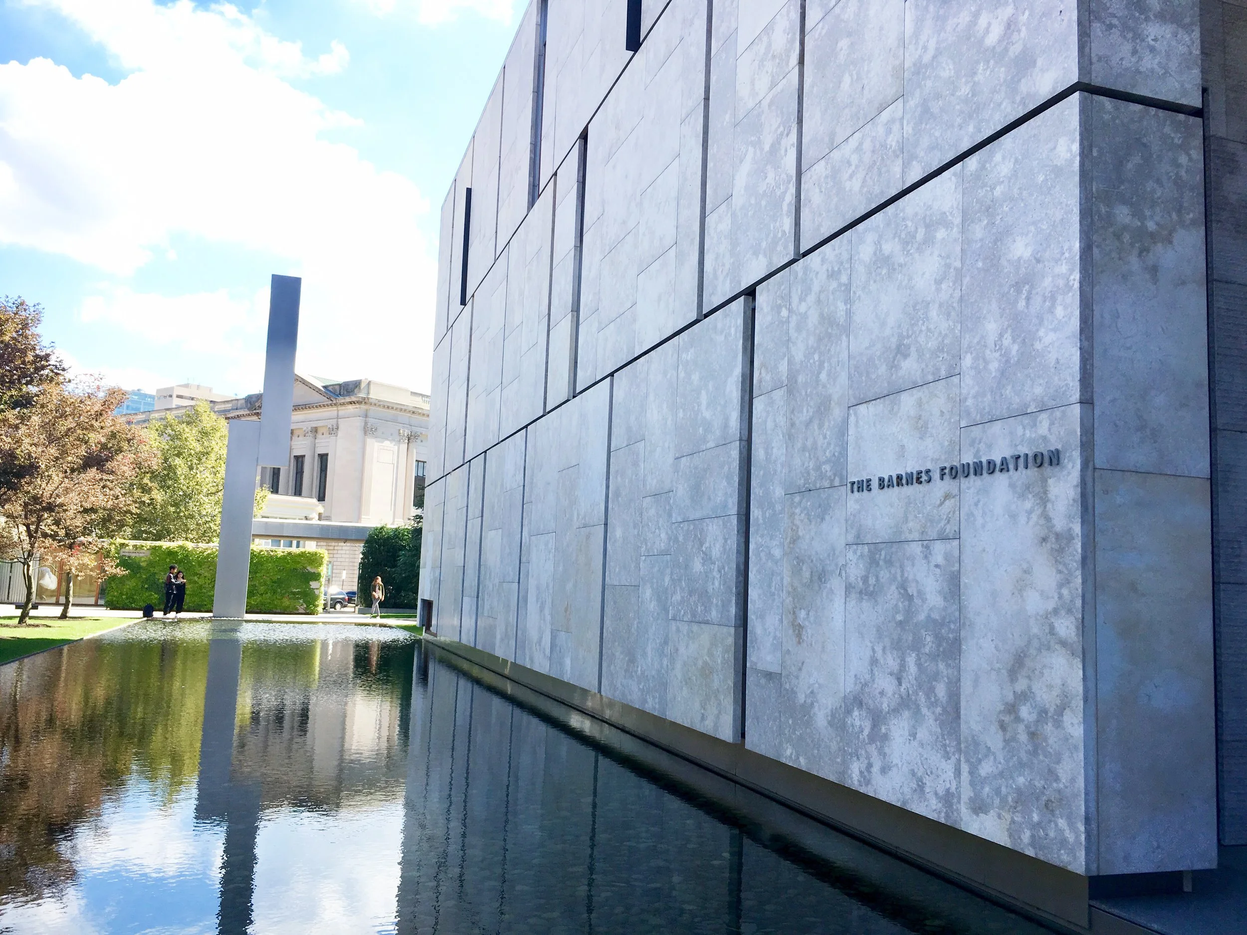 Reflecting pool at The Barnes Foundation entrance.